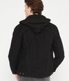 Superdry men's canvas hooded Hacienda trucker jacket. This jacket features a main popper and zip fastening, a four pocket design, popper cuffs, a corduroy collar and a removable drawstring hood with a zip fastening. Finished with a Superdry logo patch on one chest pocket.