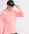 Superdry women's Core sport zip hoodie. A lightweight sports hoodie featuring drawstring adjustable hood, zip fastening, ribbed cuffs and hem, and two pockets. Finished with a rubber Superdry logo on the chest and hood.