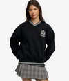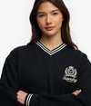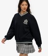 Lean into the preppy aesthetic with our Country Club Crest V‑Neckline Sweatshirt. It features a flattering v‑neckline with varsity stripes and an embroidered crest on the chest for that true country club feel, bringing a refined touch to any casual look.