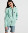 Superdry women's Elite loopback zip-through hoodie from the Orange Label range. Taking the essential zip hoodie to the next level, the Elite zip hoodie features a high-neck drawcord fastened hood along with pockets set into the side seams for a sleeker silhouette. Made with lighter weight loopback fabric for year-round comfort, the hoodie is finished with a Superdry logo on the chest. Style with shorts for those beach evenings or your favourite joggers for the epitome of comfort.