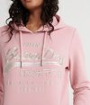 Superdry women's Premium Goods Luxe embroidered hoodie. Update your basics with this hoodie featuring a drawstring hood, ribbed cuffs and hem and a front pouch pocket. Complete with a textured Superdry logo on one sleeve, Superdry logo badge on one side seam and an embroidered Superdry logo design on the chest.