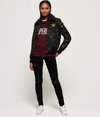 Superdry women’s Delta bomber jacket. This stylish bomber jacket features a detachable fleece collar, elasticated hem and cuffs and side zip detailing. This bomber has two front pockets and one on the sleeve and is finished with a selection of applique badges.