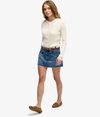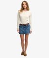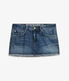 The Denim Mini Skirt is a staple for any wardrobe. Curated with inspiration from classic denim, the skirt perfectly balances modern style with vintage elements; from the frayed hemline to the refreshed embroidered logo, allowing you to layer and wear how you like this season.